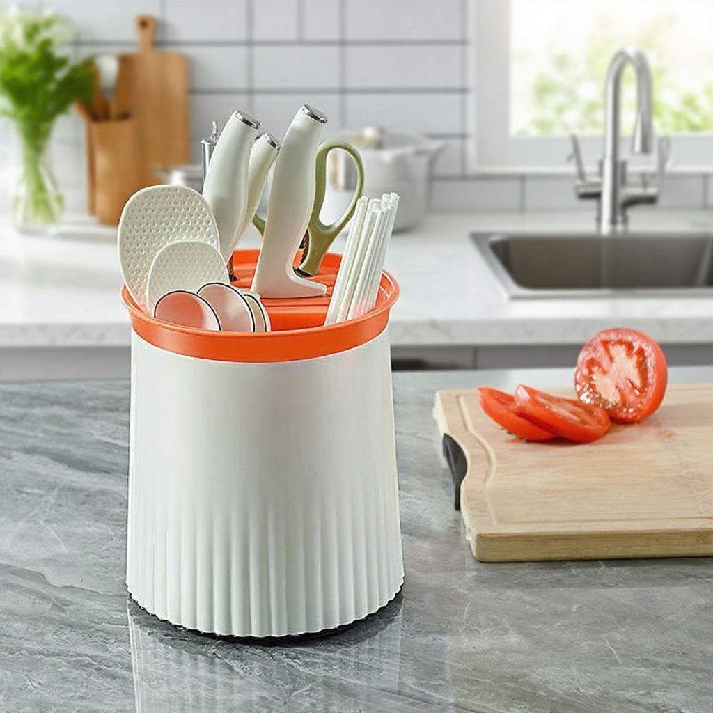 다기능 테이블 커터 회전 수납통, 다양한 크기 절단, 공간 절약 회전 디자인, 식탁 및 주방 수납에 적합, 내구성 소재 사용, 사용 편리함 제공.